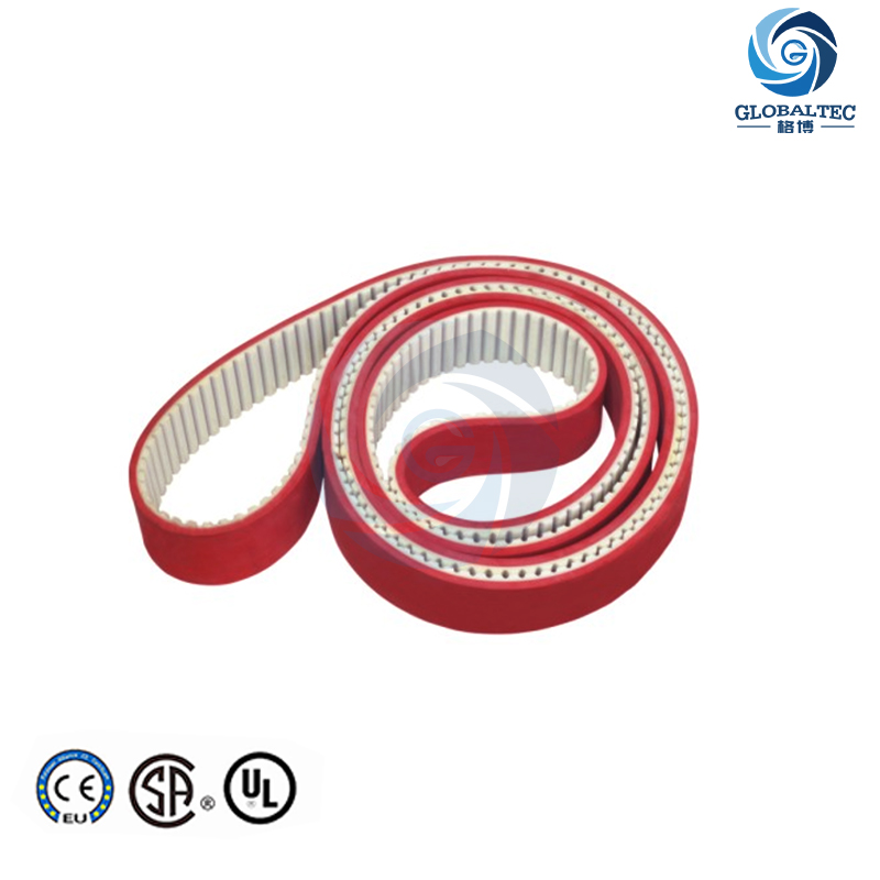 The rubber timing belt is made of high-quality synthetic butadiene rubber + skeleton material, suitable for imported glass fiber rope + tooth surface with nylon 66 high elastic cloth + equipped with a variety of different specifications for glass machinery and woodworking machinery.